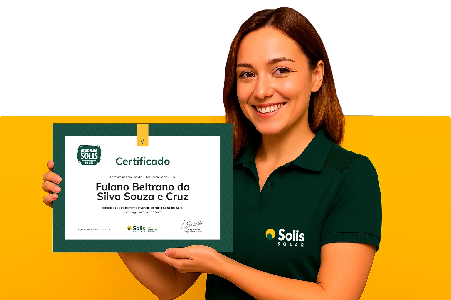 Eleve sua carreira com o reconhecimento da líder em energia solar com o selo de confiança da Solis.